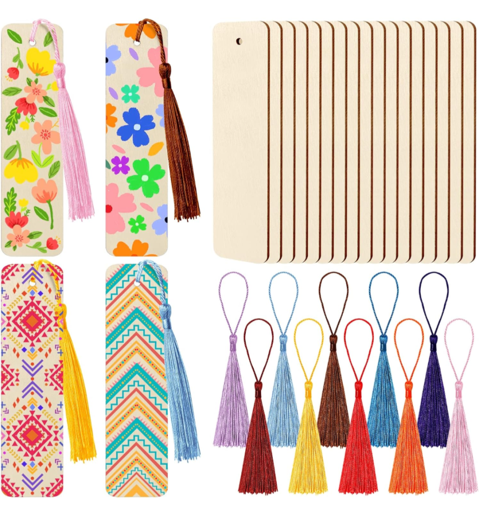 50 PCS Unfinished Wood Bookmark with 50 PCS