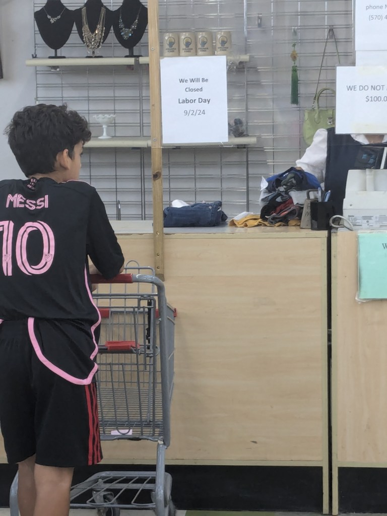 We started this shopping trip last year, and want to continue the tradition. It allowed the kids to learn a budget and stay within it. They get to make choices of wanting vs needing, and choose between two things they might really like, but want one over the other. The kids get $50 loaded onto their cards for the new school year. We went into the Salvation Army and looked at the colors of the day. The two colors are 50% off and another is $0.99. The kids get to pick out t-shirts, long sleeve, sweaters and sweatshirts, pants that they like and have to calculate the total. They get the autonomy to choose, the independence to spend how they’d like and helps them to create their own style. I can also guarantee that they’ll wear the items as opposed to choosing it for them. We can’t spend $500 on back to school clothes at regular stores or spend the $20-25 at Target and Old Navy per jeans or sweater for the kids every season. This allows us to all get what we need without having to choose between our other monthly necessities.